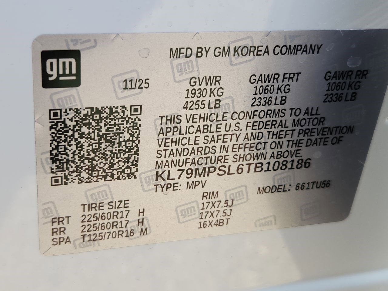 - Tires, 225/60R17 all-season, blackwall (STD)