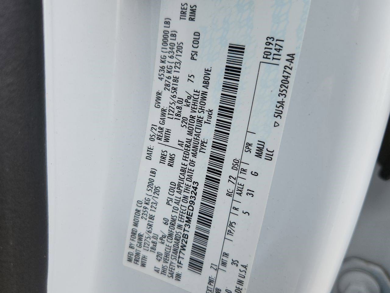 1FT7W2BT3MED93243