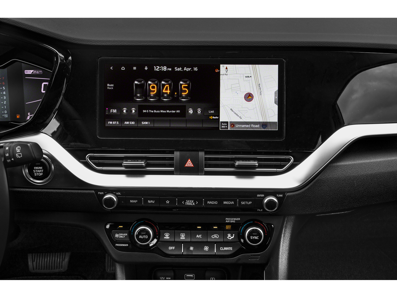 - Radio: AM/FM/HD -inc: SiriusXM satellite radio w/3 months subscription, Telematics, 10.25" navigation AVN 5.0 wide, wired Apple CarPlay and Android Auto, UVO link, harman/kardon premium sound audio w/Clari-Fi, 8 speakers, external amplifier and integrated subwoofer, Bluetooth® wireless connectivity w/voice recognition, 7" supervision meter cluster, TFT color LCD w/rheostat, 1 front 12V power outlet, 1 front USB charger and wireless phone charger