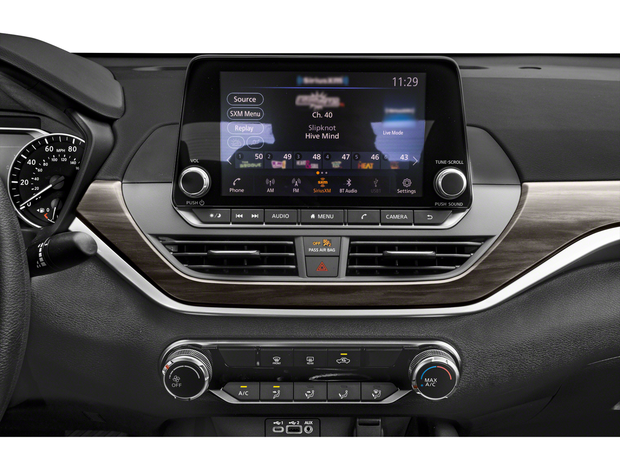 - Radio: AM/FM Audio System -inc: RDS MP3 and aux-in 6 speakers NissanConnect featuring Apple CarPlay Android Auto 8 color touch-screen display 1 front illuminated USB port (type-C) for compatible devices SiriusXM radio w/advanced audio features Bluetooth® hands-free phone system streaming audio via Bluetooth® hands-free text messaging assistant Siri Eyes Free and Google Assistant voice recognition