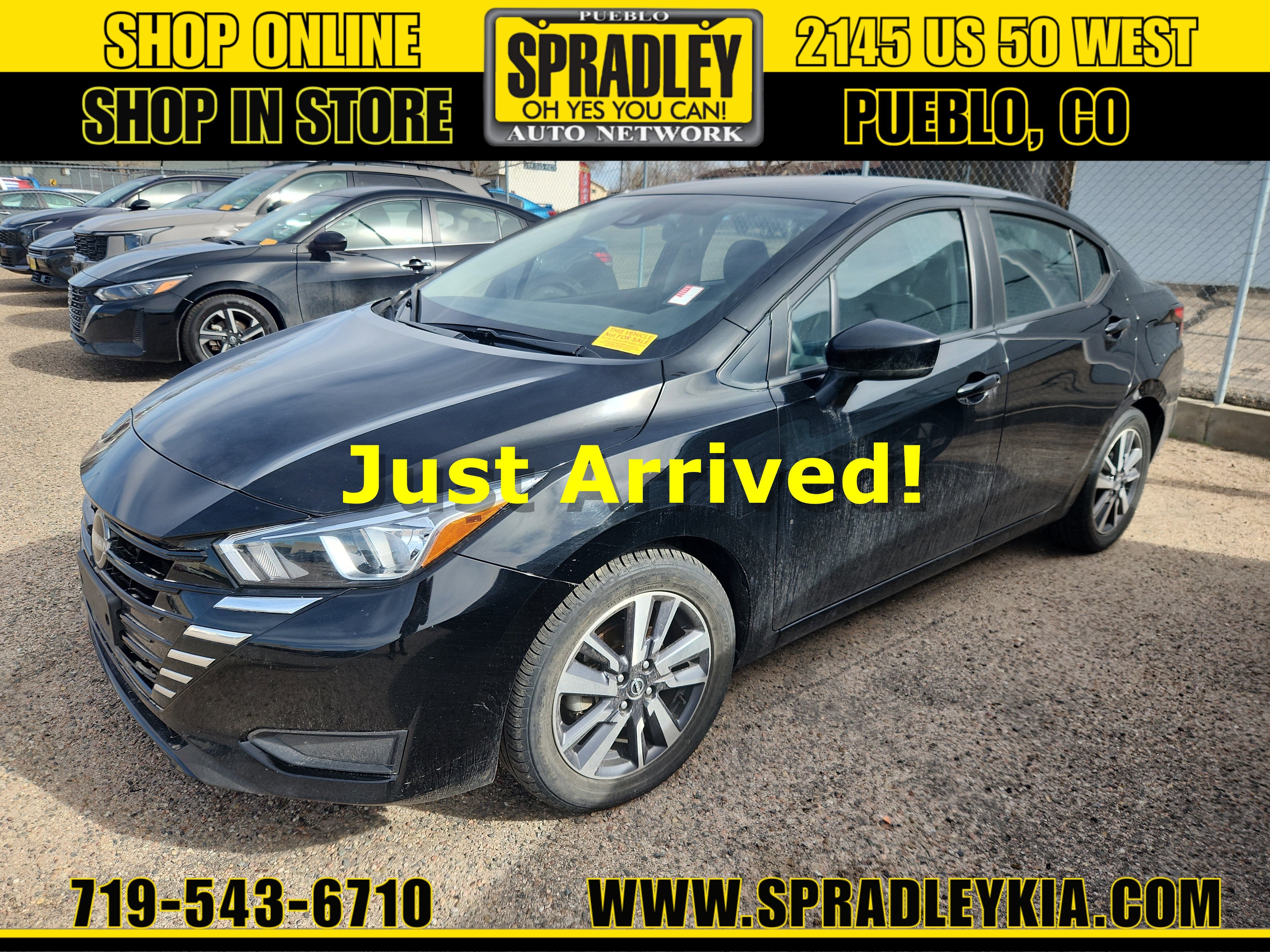 CARFAX One-Owner. Clean CARFAX. Super Black Metallic 2023 Nissan Versa 1.6 SV FWD CVT 1.6L 4-Cylinder DOHC 16VAt Spradley Kia, we offer you unbeatable prices right from the start. We value you not just as a customer today, but for life. Your satisfaction is our goal, and our team at Spradley Kia is dedicated to making that happen. Spradley Auto Network, featuring Kia, Chevrolet, and Hyundai dealerships, is conveniently located on Highway 50 West in Pueblo. We are the premier dealer group in Southwest Colorado, Southern Colorado, and Colorado Springs. Celebrating over 50 years of exceptional customer service, Spradley Auto Group works hard to ensure you leave feeling like you not only purchased a vehicle but also became part of our family. This is where you will always hear, Oh Yes You Can! Recent Arrival! Odometer is 2689 miles below market average! 32/40 City/Highway MPG