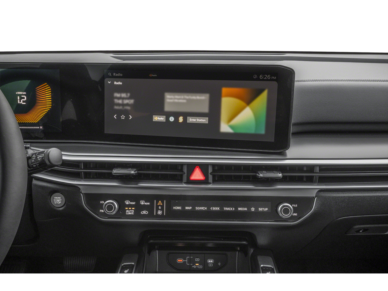 - Radio: AM/FM/SiriusXM Audio System -inc: HD radio, Kia Connect, 12.3 ccNc touchscreen, Bluetooth®, wireless Android Auto, wireless Apple CarPlay, voice recognition, modem, navigation, 6 speakers, over-the-air updates, USB connectivity and Wi-Fi hot spot